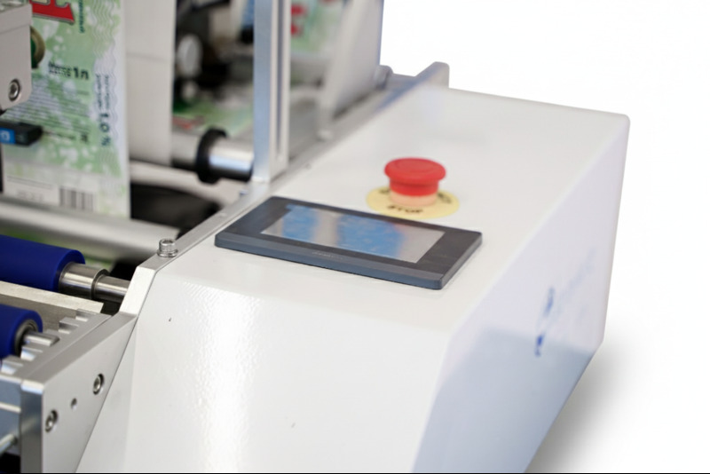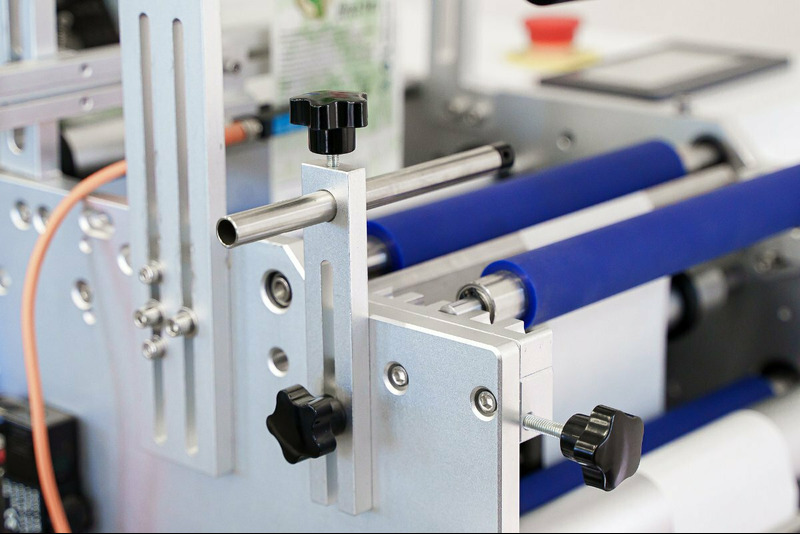 Автоматизация: Датчик фиксирует установку бутылки и запускает цикл наклеивания через выставленную задержку времени в панели управления.