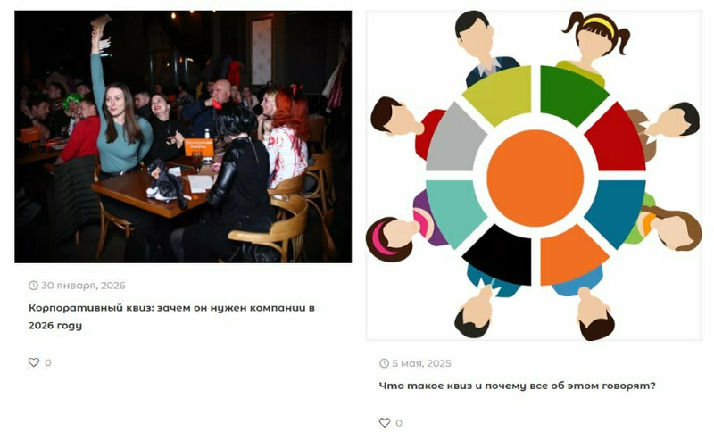 • Тимбилдинги и квизы для различных организаций и компаний — интеллектуальные игры и развлечения с высокой динамикой и отличным ведущим и привлечением всех, кто участвует.