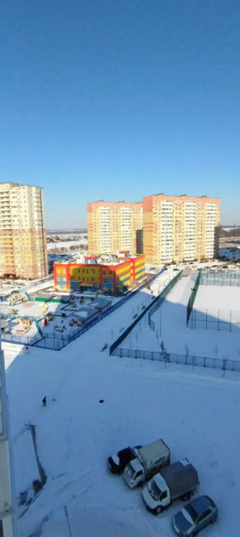 Из окна видно школу и садик.