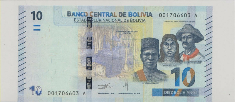 Боливия , 10 боливиано , 2018 г. , Unc .