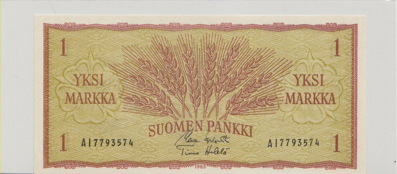 Финляндия , 1 марка , 1963 г. , Unc .