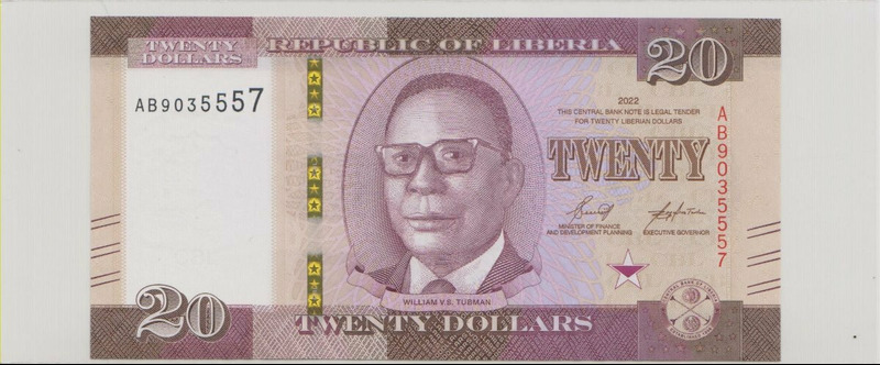 Либерия , 20 долларов , 2022 г. , Unc .