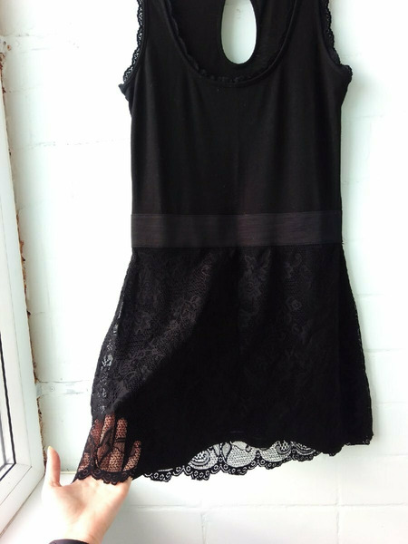 Черное платье с кружевом. Нейлон. Длина 83. Зашита дырочка.