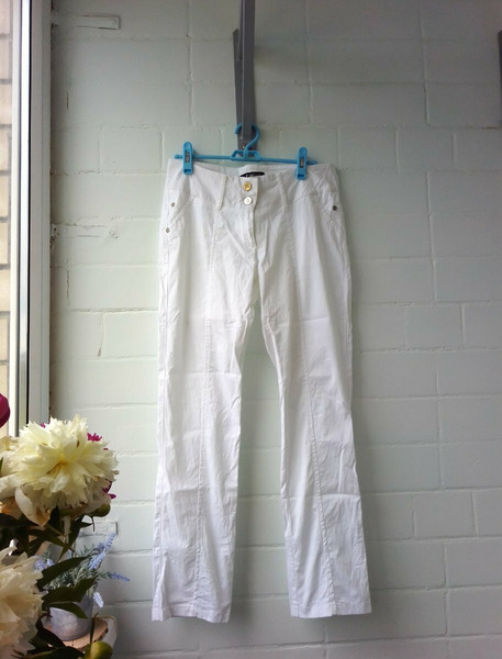 Белые брюки женские. Хлопок. ОБ до 96, длина 94. Пятнышко, нет клепки, распустился шов.